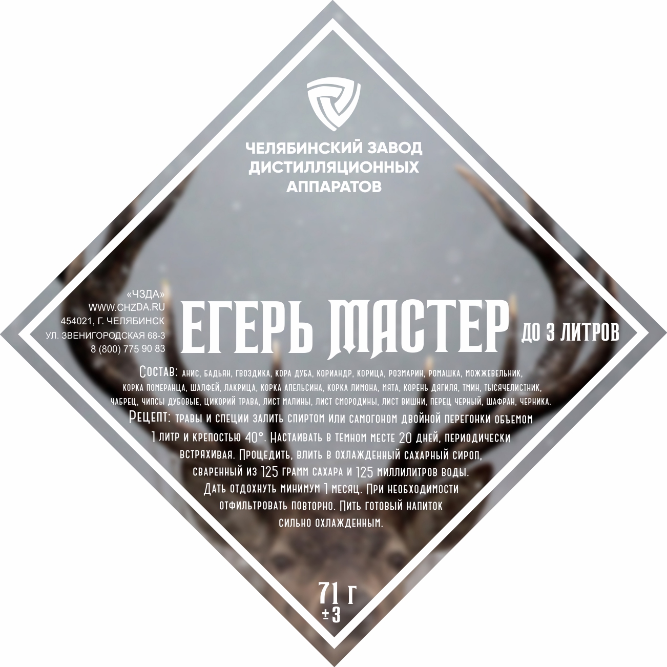 Ingredients: anise, star anise, cloves, oak bark, coriander, cinnamon, rosemary, chamomile, juniper, orange peel, sage, licorice, orange peel, lemon peel, mint, angelica root, caraway, yarrow, thyme, oak chips, chicory herb, leaf raspberries, currant..