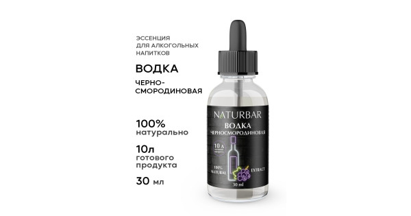 Essenciya "Vodka chernosmorodinovaya", 30 mlNatural'naya vkusoaromaticheskaya essenciya dlya sozdaniya nastojki v domashnih usloviyah.Primenenie: Dobav'te soderzhimoe flakona v Vash distillyat, magazinnuyu vodku ili spirt, razbavlennyj vodoj do nuzhn..
