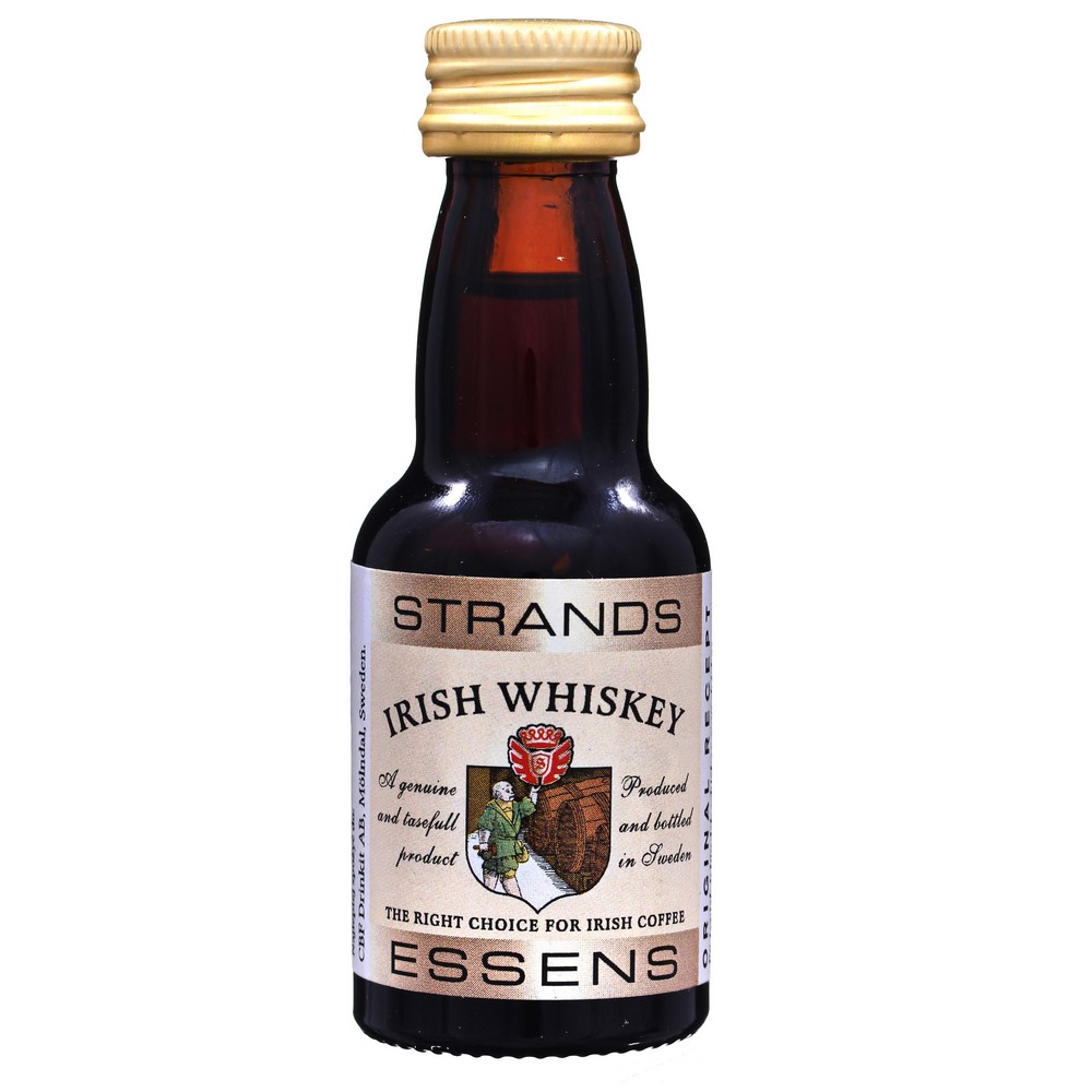 Essence Strands Irish Whiskey 25mlNatural flavoring essence for making Whiskey at home.Application: Dissolve the contents of the vial in 700 ml - 1000 ml of 40% homemade distillate. The product is ready for use in 2-3 days.Ingredients: natural flavor..
