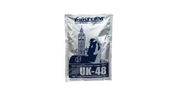 Active dry alcoholic turbo-yeast Puriferm UK-48 TURBO alcoholic yeast (128 gr) with a full range of macro and micro nutrient elements, ideal for fermenting fruit and sugar bases of any raw material (glucose sugar syrup). Turbo Yeast Turbo Yeast Alcoh..