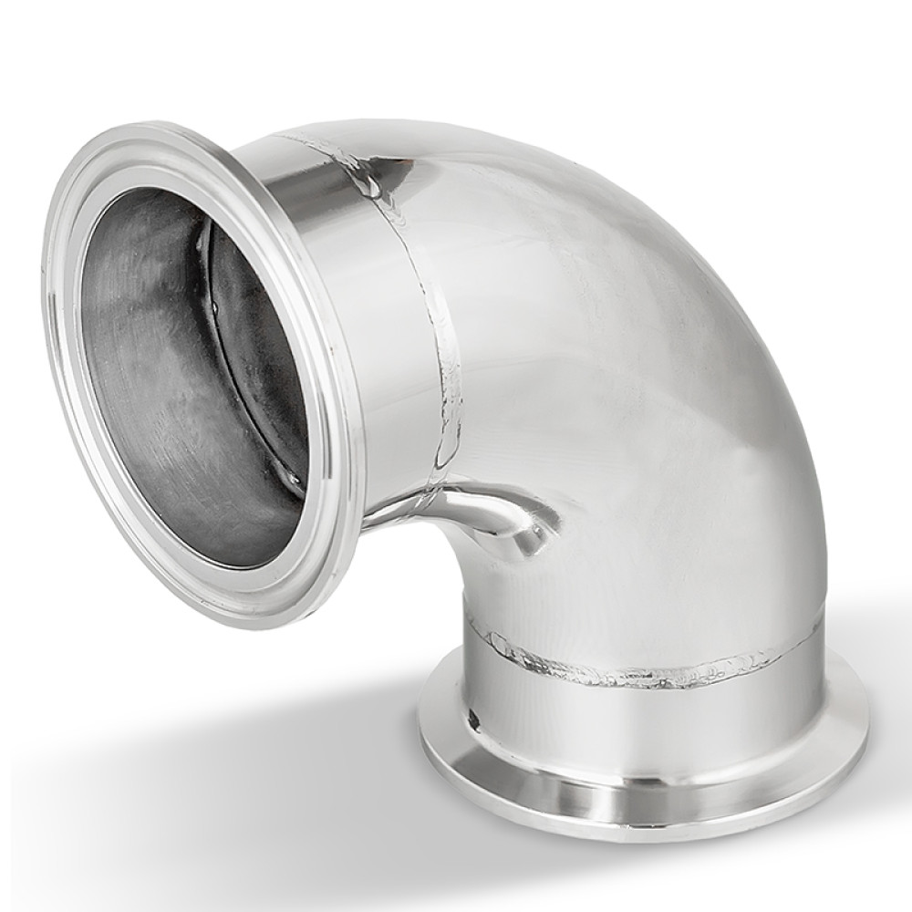 The connecting element provides reliable, strong and tight connection of pipes in a distillation column and a distiller. Transition of 90 degrees is made of food grade AISI 304 stainless steel. Fastening - under the clamp 2 inches (64 mm)