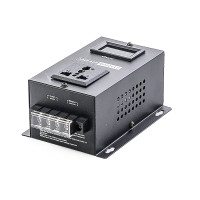 Use a single-core copper wire when connecting; when using a stranded one, be sure to tin the tip with a soldering iron. 220 volt power supply and load are connected at the terminals and tightened with screws. The socket on the device body is designed to output an unregulated constant voltage of 220 volts, 10 A. The buttons on the device panel are designed to regulate the voltage in percentage from 0-100 (indication on the front panel) or in volts from 0 to 225 in steps (indication on the top cover device). When the instrument is turned on again, the previous settings are reflected.