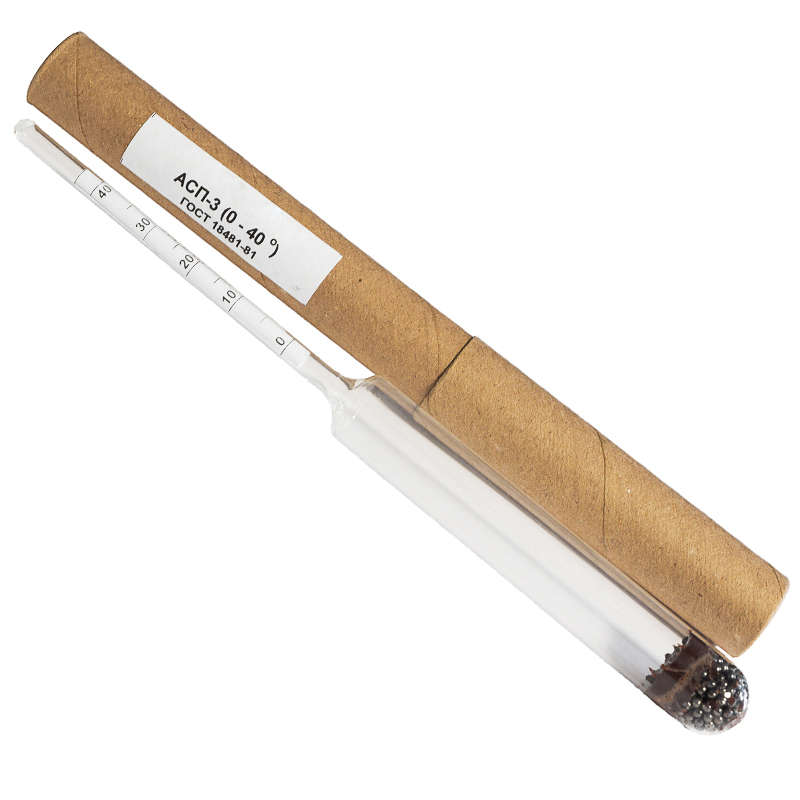 Set precision alcoholmeters designed to measure ethyl alcohol, vodka and water-alcohol solutions. It shows the volume percent (degrees strength) in three measuring ranges: