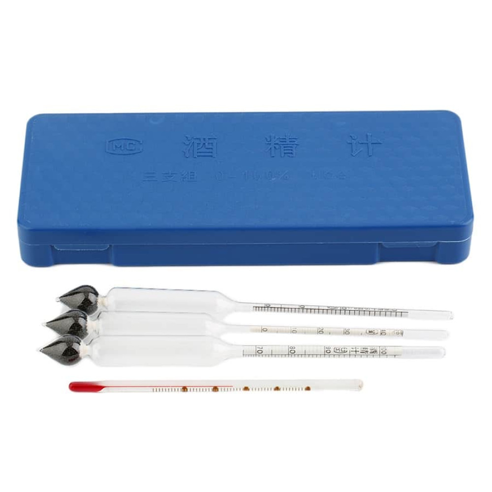 This set of alcoholmeters is the dream of any professional of distillation: the set includes high-precision alcoholmeters for the entire range of measuring the volume content of alcohol in distillate and rectified. In addition, the set includes an immersion thermometer to monitor the temperature of the beverage being examined and to timely amend the measurement results to obtain accurate results according to the correction temperature table.