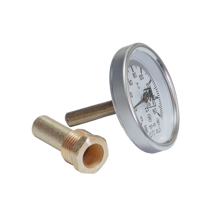 Bimetallic thermometer for home-brewed apparatus "Gorilych" to control the temperature in the alembic. The simple and robust design.