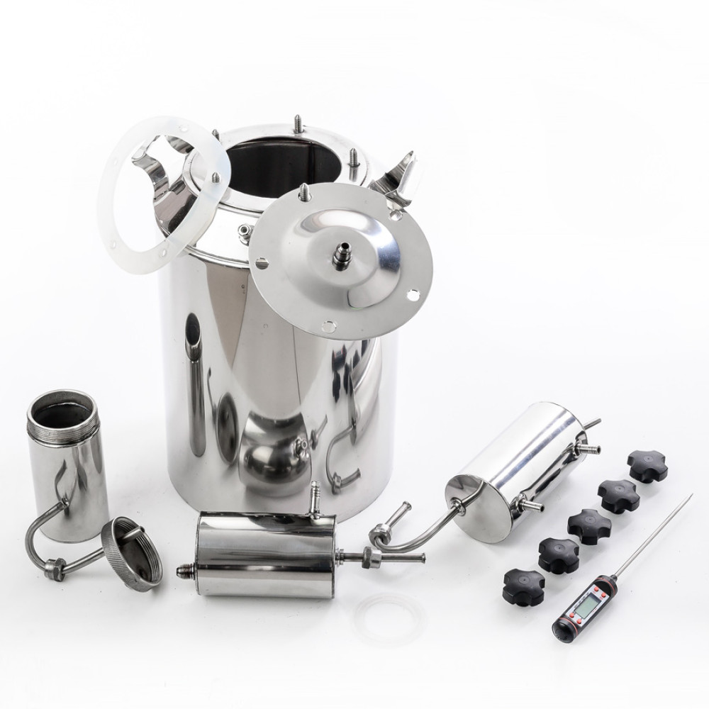 The moonshine distiller with two steam domes will allow you to create pure rum, cognac, brandy and other alcohol personally. You will have possibility to make it just in one hour with large volumes. The throat with 110 mm (3.9 inches) width, the flat bottom and comfortable design are turning moonshine distillation in real celebration, which you can share with your closest friends.