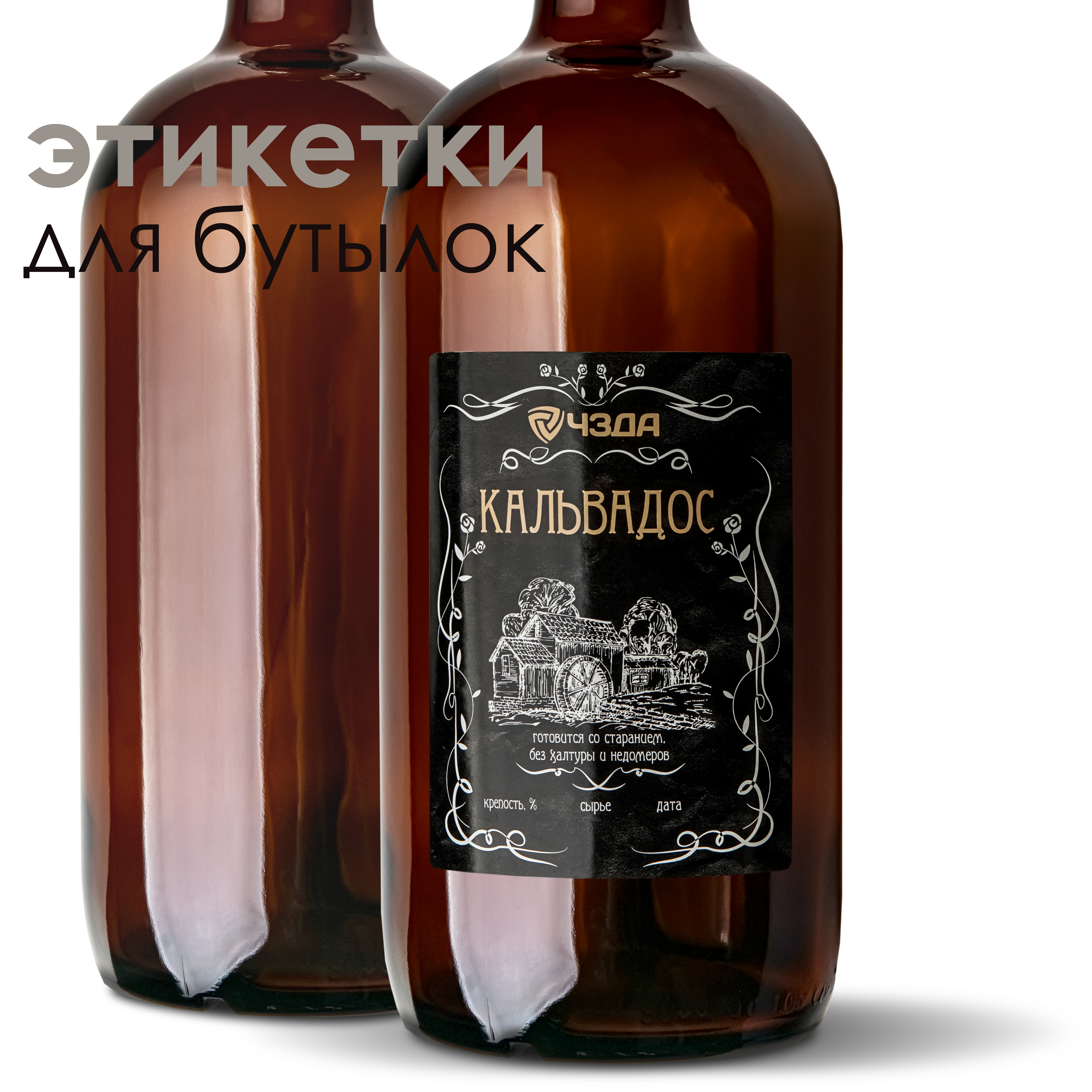 Etiketka dlya butylok "Kal'vados"Samokleyashchayasya etiketka "Kal'vados" prednaznachena dlya oformleniya butylok s napitkom sobstvennogo prigotovleniya.Razmer: 80 * 100 mmNa naklejke raspolozheno tri polya dlya ruchnogo zapolneniya:Krepost' %Syr'yoD..