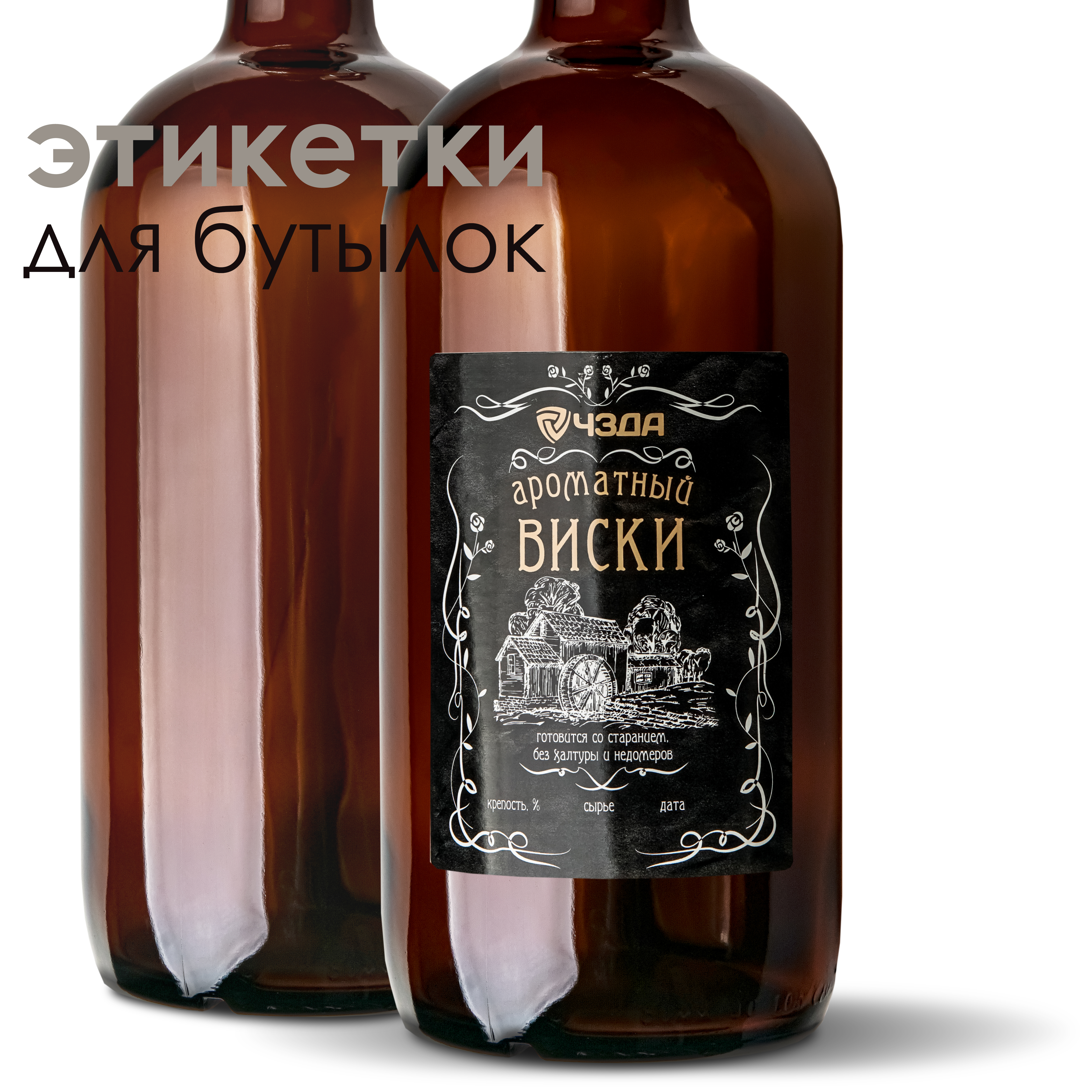 Etiketka dlya butylok "Aromatnyj viski"Samokleyashchayasya etiketka "Aromatnyj viski" prednaznachena dlya oformleniya butylok s napitkom sobstvennogo prigotovleniya.Razmer: 80 h 100 mmNa naklejke raspolozheno tri polya dlya ruchnogo zapolneniya:Krepo..