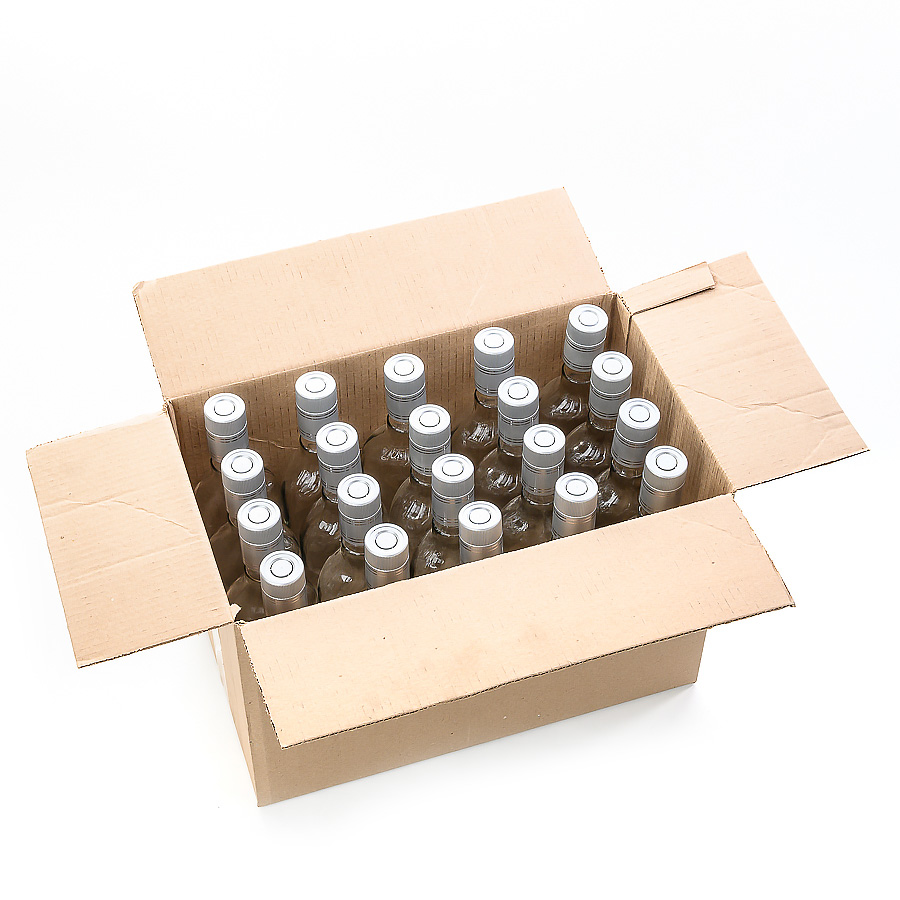 20 bottles of "Guala" 0.5 l without corks in a box are made of transparent glass, suitable for storing alcoholic beverages: rectified, distillates and various drinks.Guala caps are used to seal bottles (not included in the kit and purchased separatel..