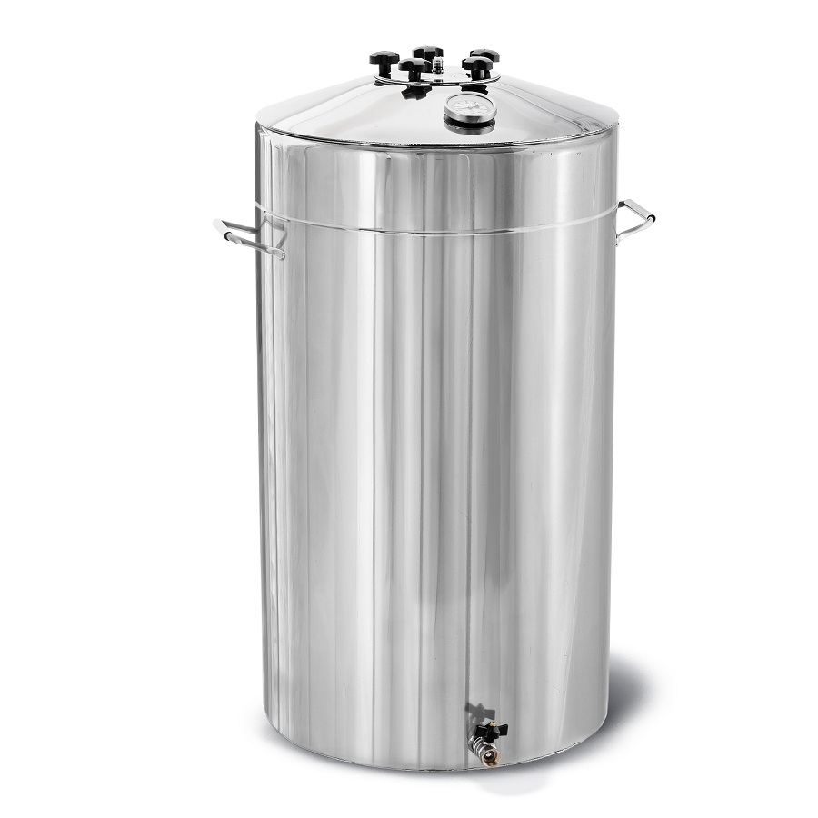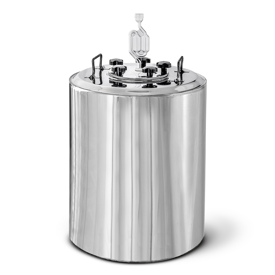 The next moment, in order for alcohol yeast not to die and not to slow down its activity, the temperature in the fermentation tank should be kept close to 30 ° C, neither more nor less. With an increase in temperature - the death of bacteria is imminent, with a decrease - the fall in activity. To monitor the temperature, it is best to use thermometers (thermal control). The material of manufacture is food stainless steel, which is absolutely harmless, durable and does not pose a threat to human health. If necessary, the fermentation tank can be equipped with all the necessary control and filling equipment: hydraulic seal, thermometer and ball valve.