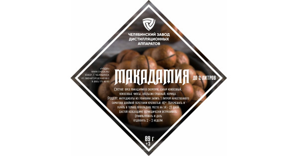 CheckoutIngredients: inshell macadamia nut. coconut sugar. coconut chips, dried orange, cinnamon. Recipe: Pour the ingredients from the package with 1 liter of high-quality double-distilled moonshine with a strength of 40%. Stir and remove in a cool dar..