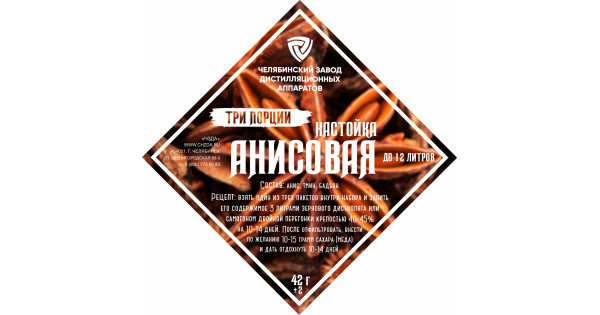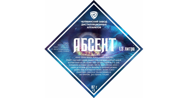 The set of herbs and spices "Absinthe" includes: anise ordinary, coriander, wormwood, fennel, lemon balm, licorice, hyssop, mint.
