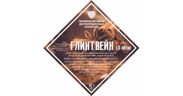 The set of spices "Mulled wine" includes: badon, carnation, raisins, cinnamon, nutmeg, sweet pepper.